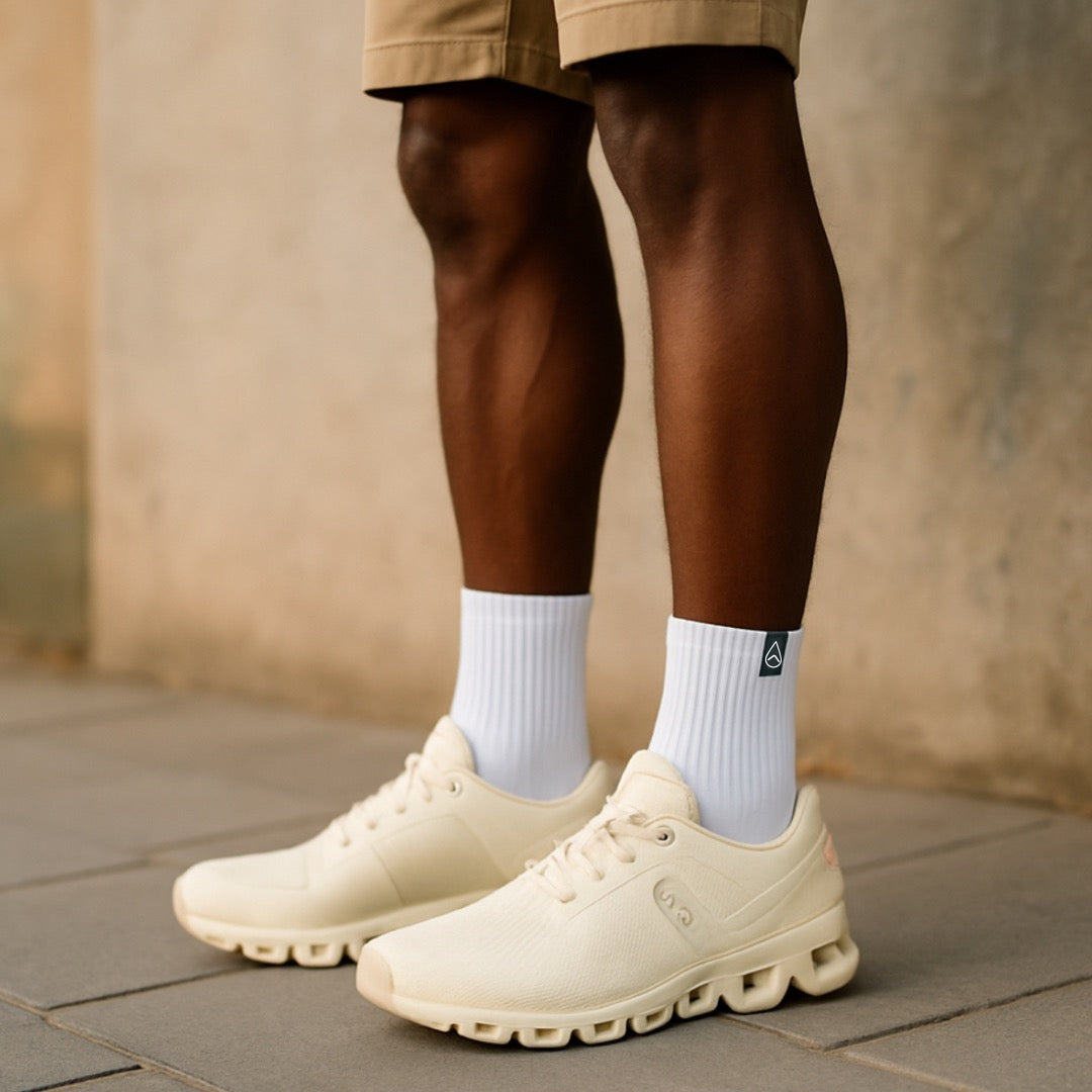 Our exclusive crew sock, complete with brand logo treatment for a simple moisture wicking solution. Cross functional stretch and reinforced arch